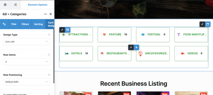 Now we will do some needed settings in this GD > Listings block. we will set sorting: recent