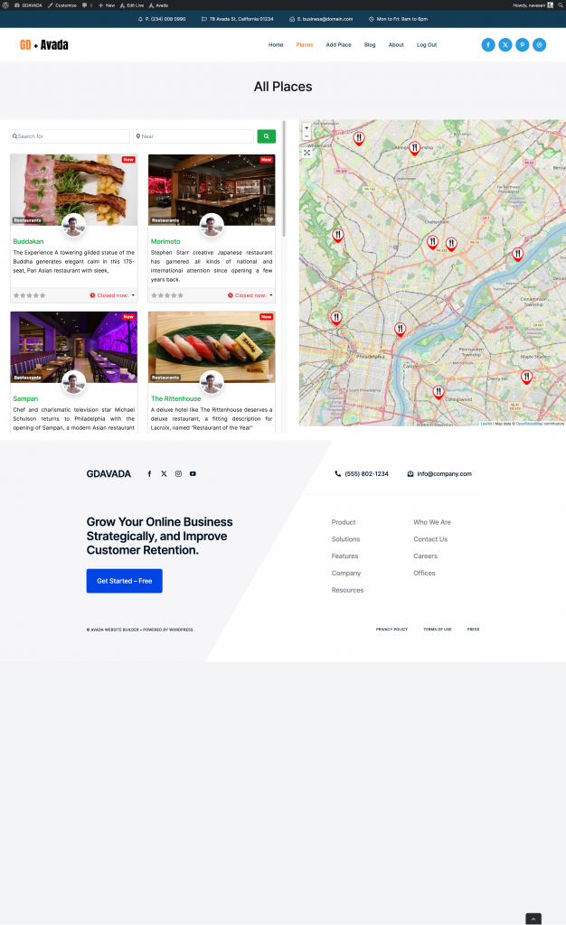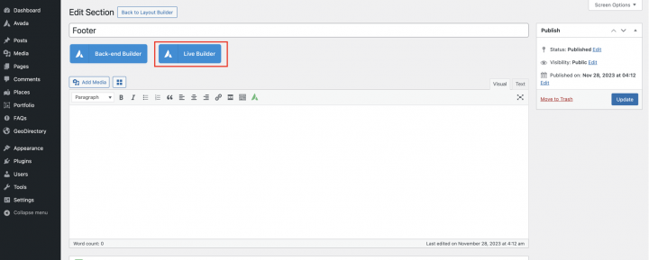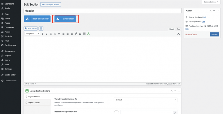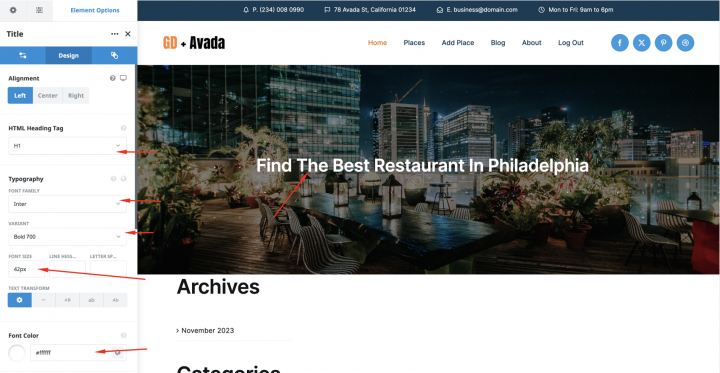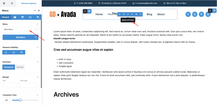 Now that we have installed the theme and the plugins and done the preliminary setup of GeoDirectory, we can start designing our Directory Website with the Avada Suite of tools.