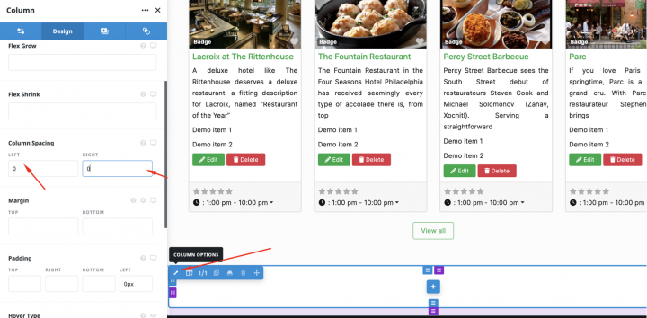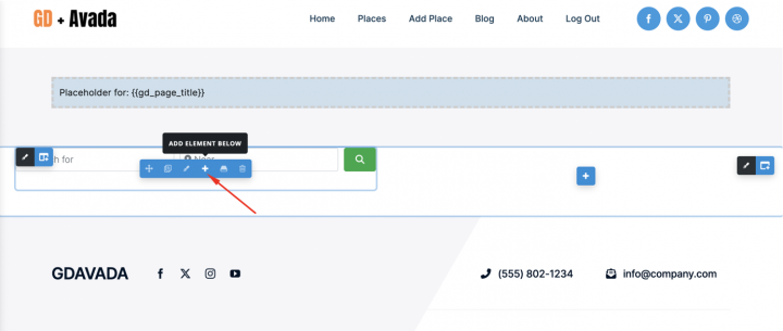 Below the hero section, add one more Column by clicking on the plus icon and add the GD > Listings blocks there.