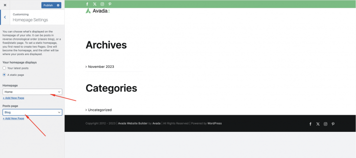 Next, go to Appearance > Customize > Homepage Settings and select your Home.