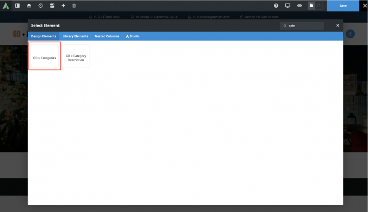 Now we will add an empty grid below the hero header and add the GD > Categories block in that grid.