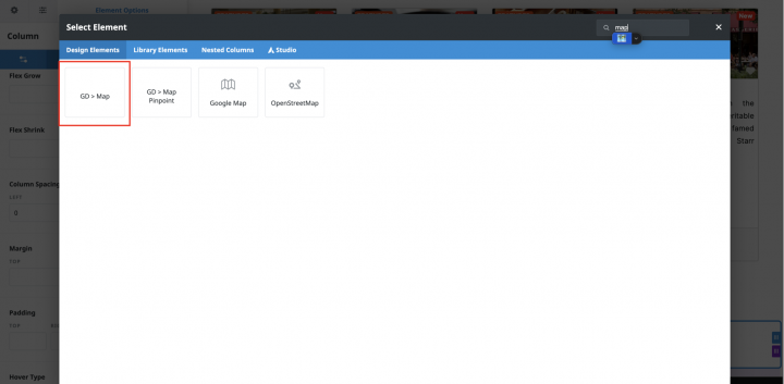 we will keep all the settings default for the GD > Map. let’s give it some height and I have decided to give it the height of 150vh.