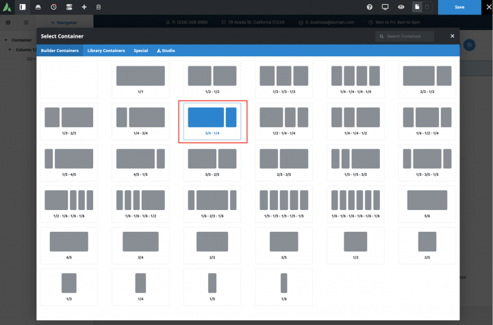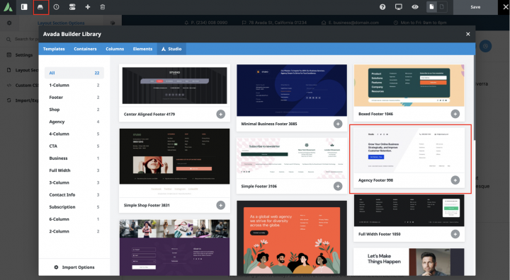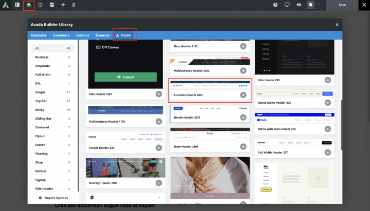 In this example, we will select a prebuilt Header Layout from the studio section.