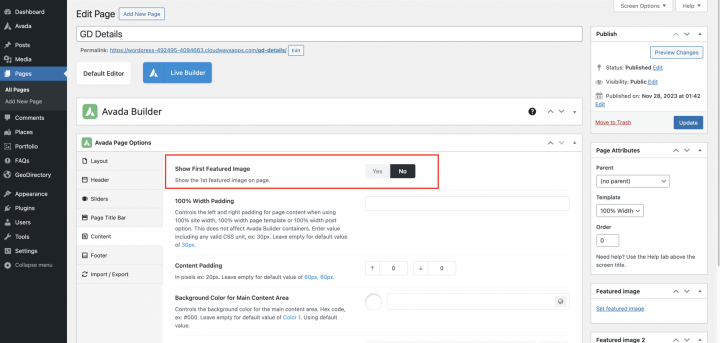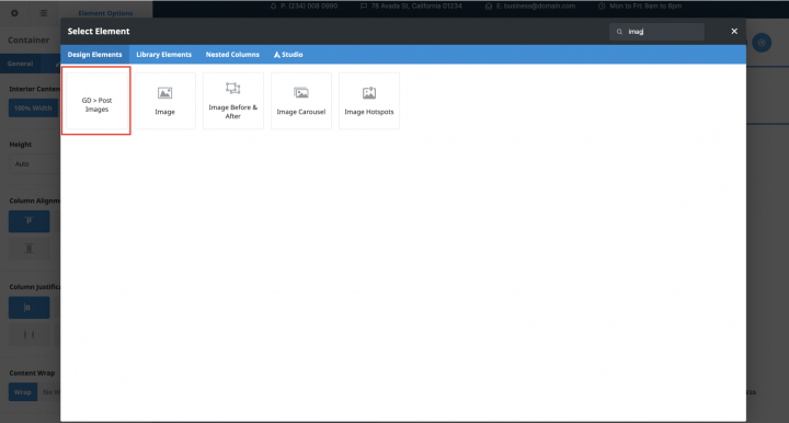 Let’s first add an image slider at the top of the Listing Detail page. we will drag the GD > Post Image block in this container with the following settings